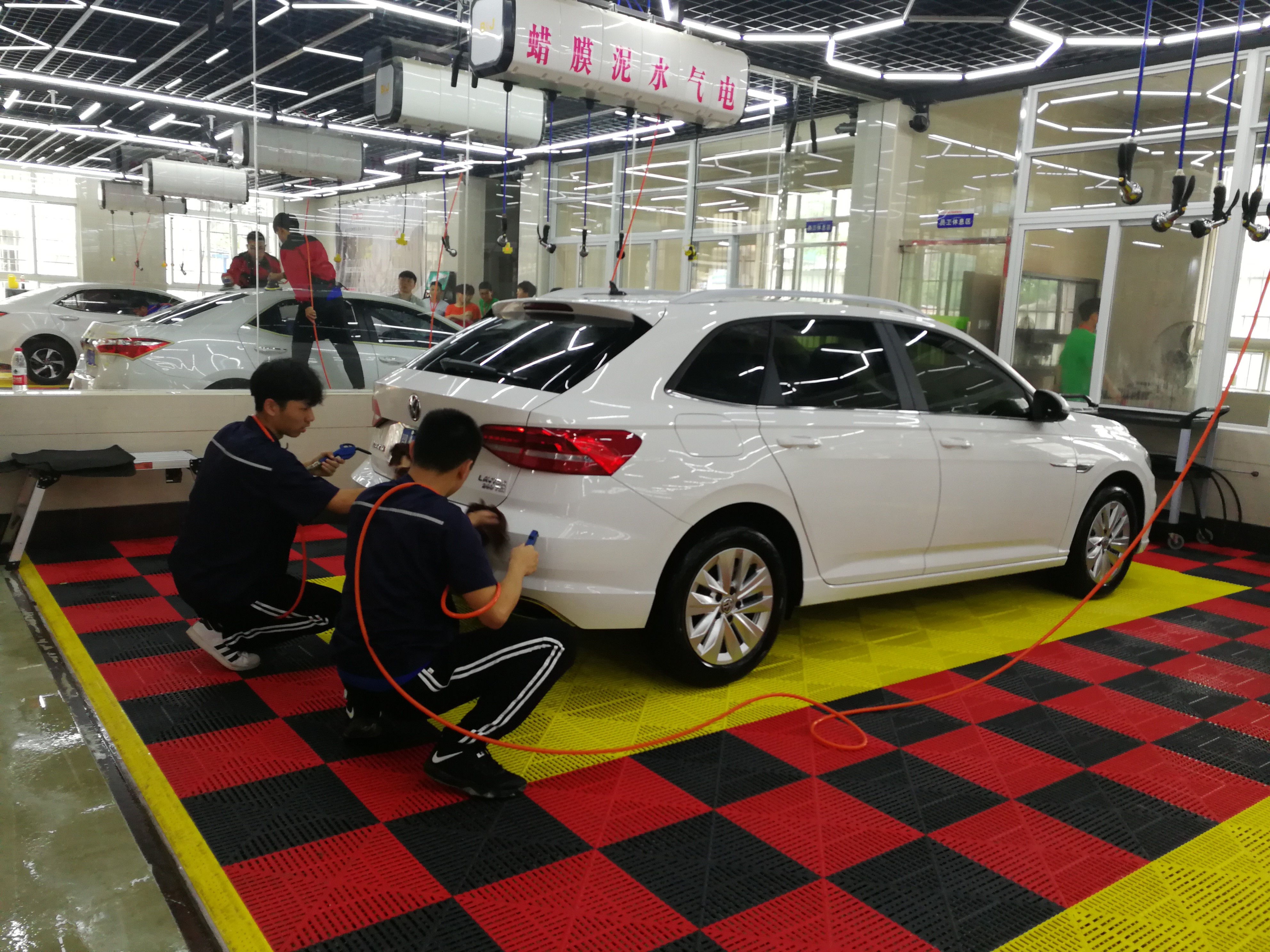 汽修高考1801班张凯、卢大林进行汽车漆面护理项目