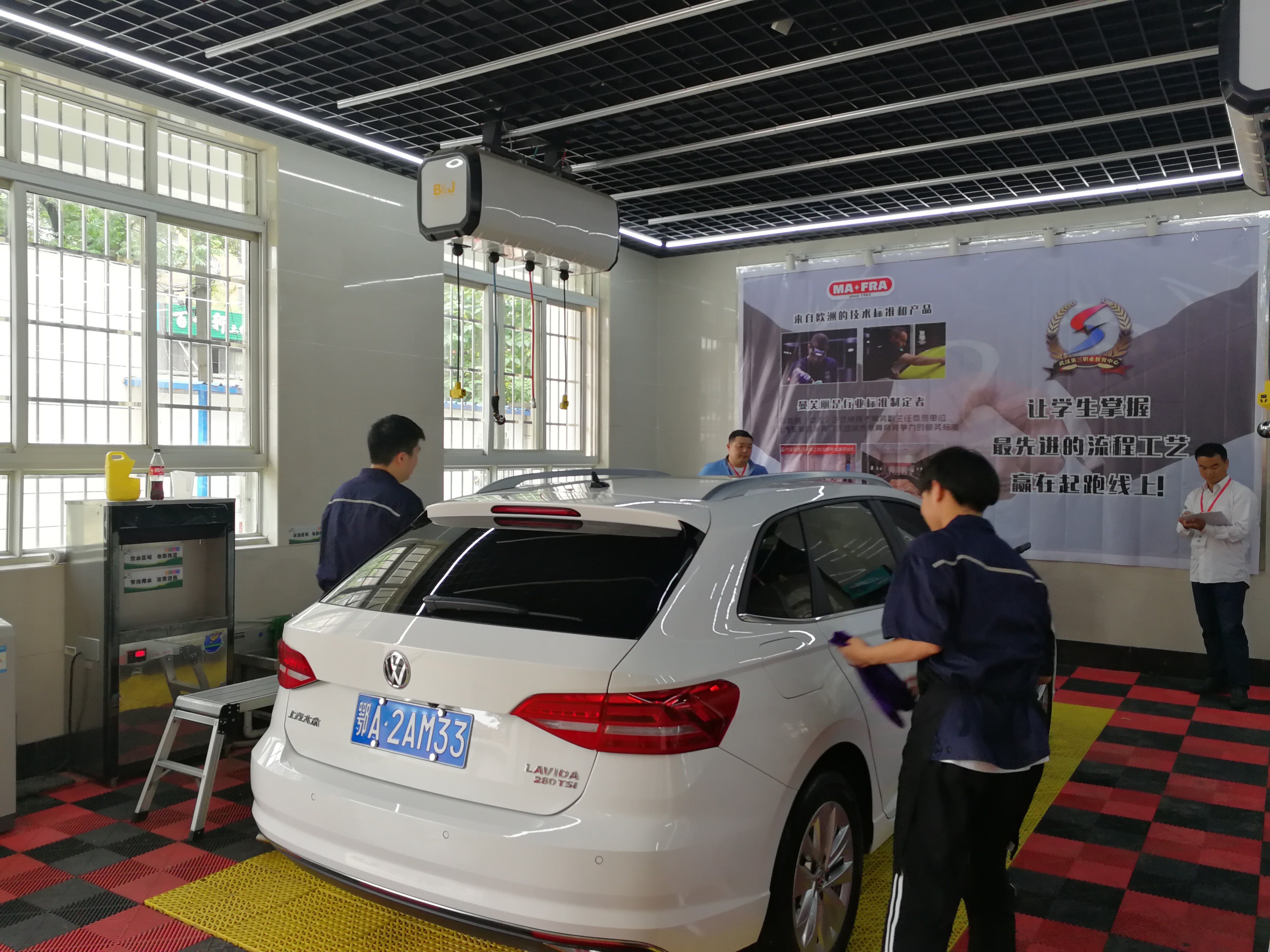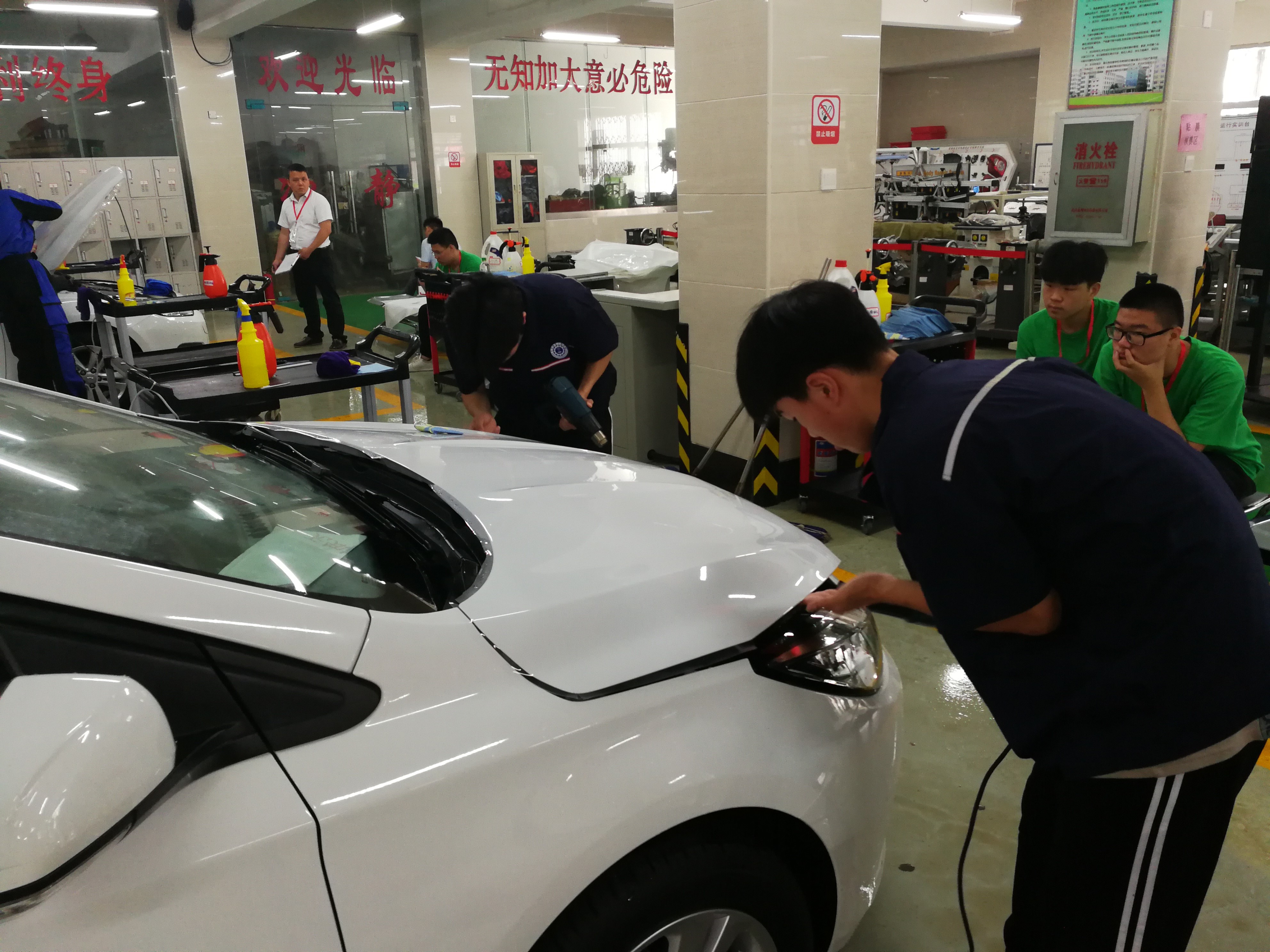 武汉市中职汽车美容技能大赛于2019年5月17日在武汉市第三职业教育中心如期开幕。本次竞赛分汽车外部清洁、汽车内饰清洁护理、汽车漆面护理、汽车车身贴膜共四项,总共有13支代表队104名选手参赛,大赛规模及参赛人数创历年之最。武汉机电工程学校来自汽修3+2 1801班余子昂、王轶明、王巍,汽修高考1801班张凯、尹嘉兴、卢大林、胡诗音以及汽修1802班杨光等八名参赛选手在指导老师赵军和黄芹的指导下分别参加了汽车外饰清洗、汽车打蜡、,经过一天紧张激烈的角逐,荣获团体“一等奖”好成绩。