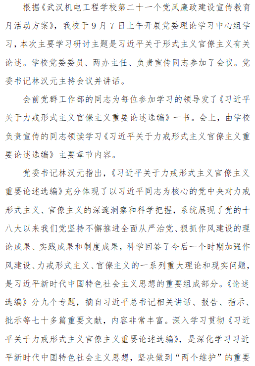 我校开展第二十一个党风廉政建设宣传教育月活动之一 ——党委理论学习中心组学习