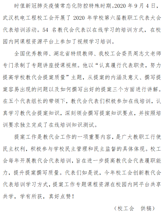 创新培训学习方式 促进教代会提案工作---我校举办2020年第六届教职工代表大会代表培训班