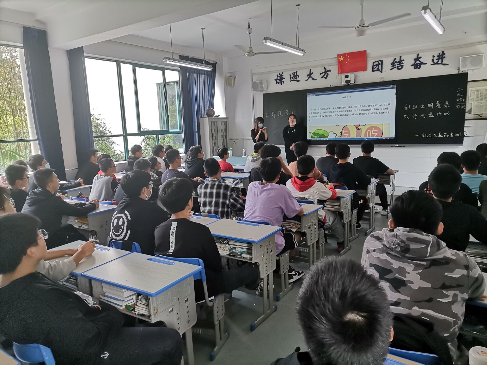 主题教育通过签名活动、主题教育课、主题黑板报及食堂文明岗向师生传递了光盘行动不仅是一句口号,更是厉行节约、倡导珍惜的生活态度。为营造活动氛围,团委学生会利用晚自习在各班级发起了“节约粮食,反对浪费;光盘行动,从我做起”的签名倡议活动。为进一步内化师生践行光盘行动,学生工作处、团委精心准备了主题教育课的学习内容,通过观看视频、阅读文字、学生发言、班主任点评补充,让同学们深刻的体会到“一粥一饭,当思来之不易;半丝半缕,恒念物力维艰”的道理。为普及健康消费、合理膳食等科普知识,各班办理了一期“创建文明餐桌 践行光盘行动”的主题黑板报等。
