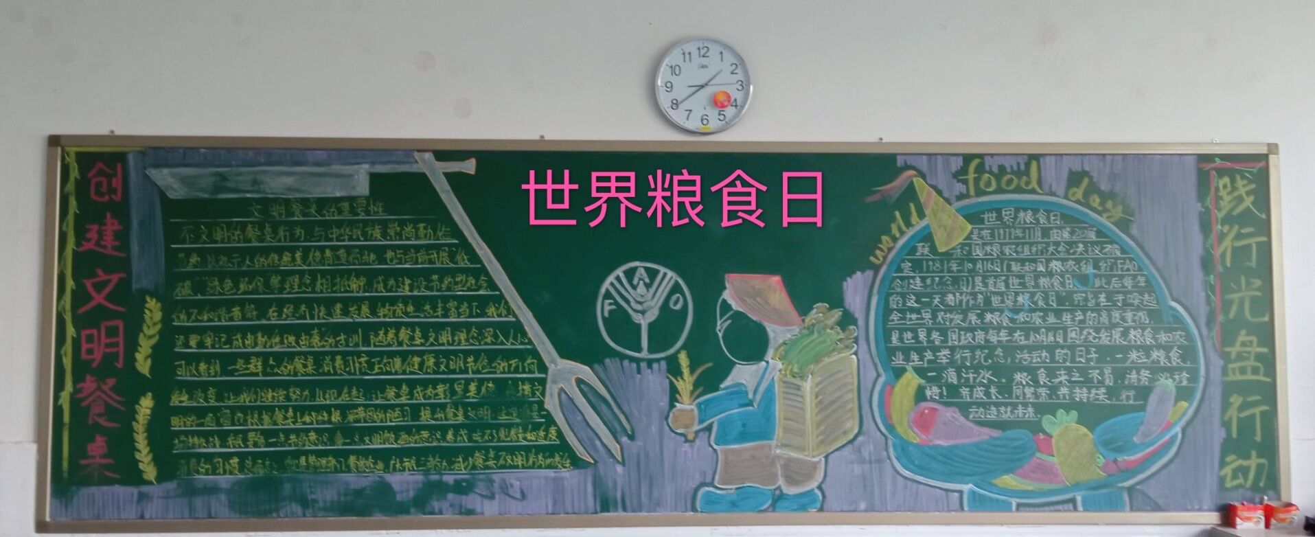 2020年10月16日是世界粮食日,为了提高我校师生勤俭节约意识,营造爱惜粮食、节约粮食的良好氛围,我校于9月下旬-10月初深入开展了以“创建文明餐桌 践行光盘行动”为主题的系列活动。本次活动参与班级42个,参与师生人数达1600余人。
