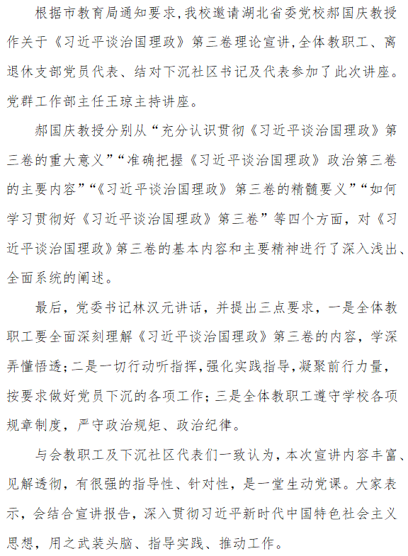 发挥教育优势 合力共建促发展——我校举办《习近平谈治国理政》第三卷理论宣讲