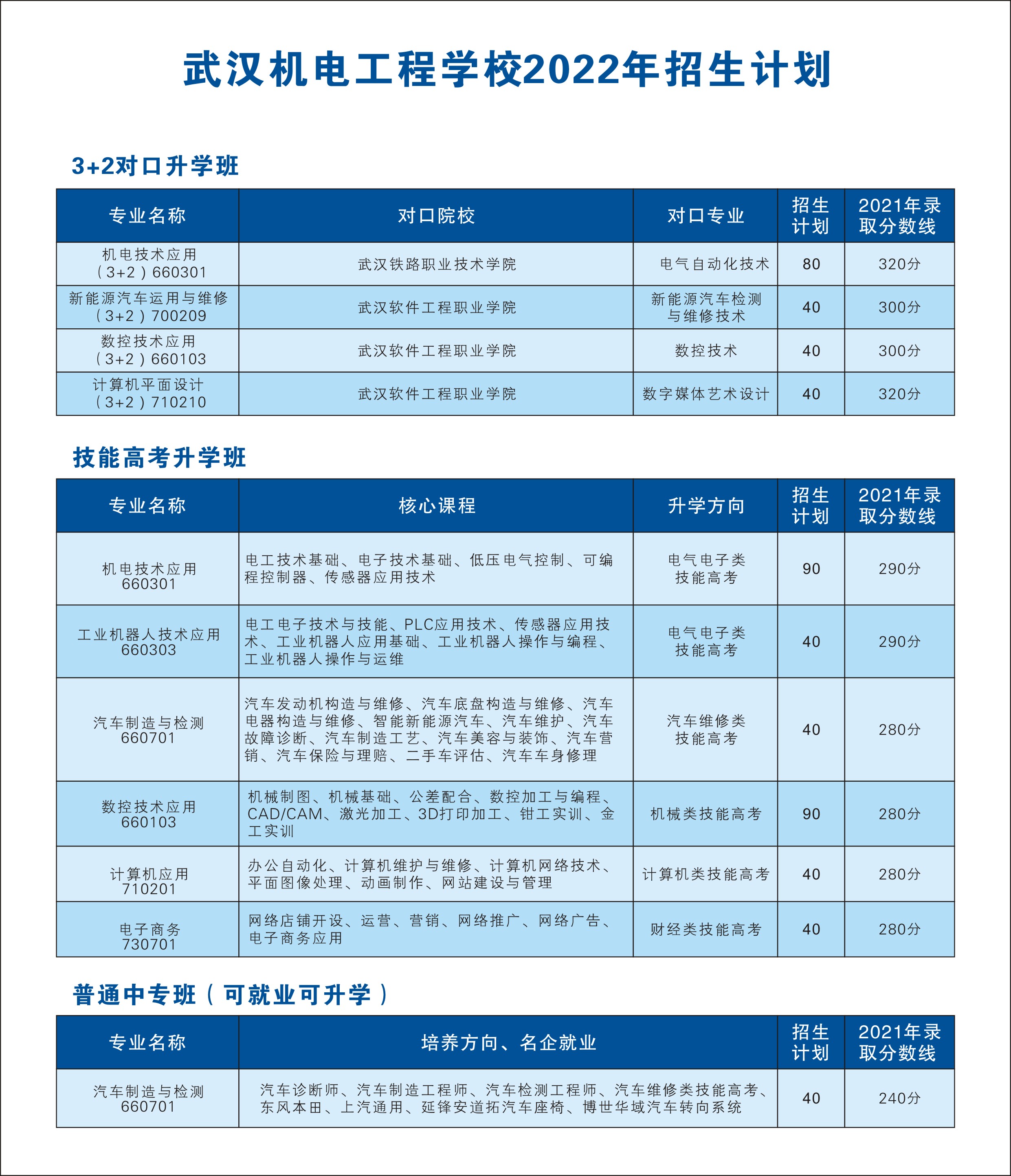 武汉机电工程学校2022年招生计划