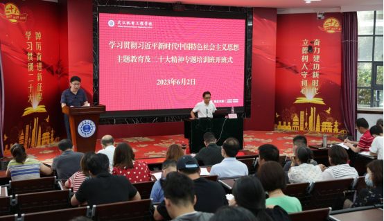 为进一步学习贯彻习近平新时代中国特色社会主义思想主题教育及二十大精神,提升党员干部政治素养,推动学校高质量发展,营造浓厚学习氛围,确保主题教育深入开展,取得实效。2023年6月2日下午,学校举办学习贯彻习近平新时代中国特色社会主义思想主题教育及二十大精神专题培训班开班仪式。开班仪式由校党委书记林汉元主持,全体教职工参加。学校特邀武汉市社会科学研究院文化与历史所所长,陶维兵教授给全体教职工讲了一堂题为《读懂中国式现代化》的主题党课。