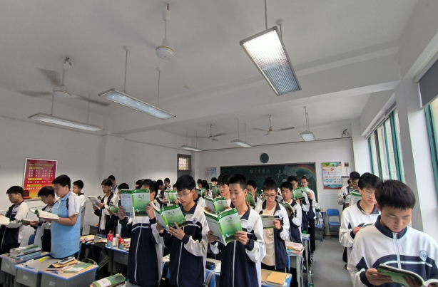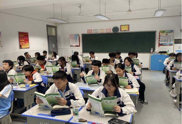 “青年如初春,如朝日,如百卉之萌动,如利刃之新发于硎,人生最可宝贵之时期也”。每天清晨7:50—8:30,同学们用朗朗的读书声开启了一天的学习时光。伴着晨光,迎着春风;手捧书卷,书声琅琅。学生身姿端正,声音洪亮,精神饱满,激情忘我。用挺拔的身姿、响亮的读书声诠释了青春的姿态。有的班级在进行古诗词诵读,同学们融入了历史的深远之中,领悟到了屈原的忠义、孔子的坚守、苏轼的旷达……了解到了国学的博大与精深,更增强了民族自尊心、自信心和自豪感;有的班级诵读了经典短篇美文,在作者笔下的一个个小故事中,感受语言的美丽,学习人生的道理;还有的班级进行了优秀作文诵读,不仅提高了同学们的表达能力,还能为日常写作积累好词好句,增加自己的知识储备。