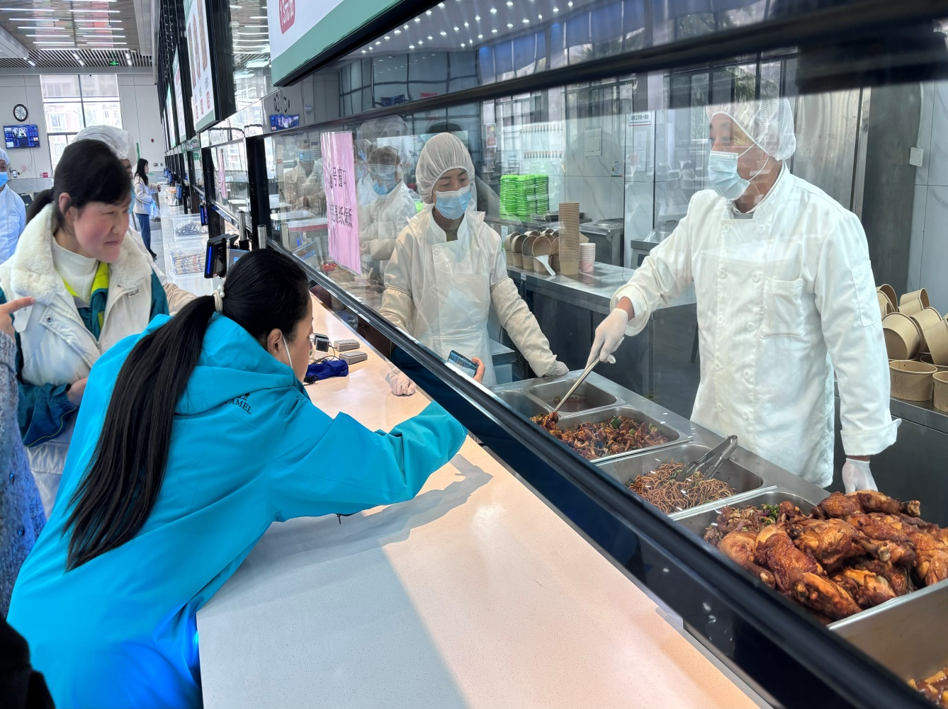 活动紧扣中职学校自营食堂运营特点,聚焦家长最关心、最关注的食材质量、菜品制作、卫生安全、营养搭配等核心问题,科学规划体验流程,确保活动有序、高效开展。在学校总务处膳食科工作人员的全程引导和细致讲解下,家委代表们先后深入食堂食材储存区、粗加工区、切配区、烹饪区、售卖区等各个功能区域,实地察看食堂的整体环境和规范化管理情况。