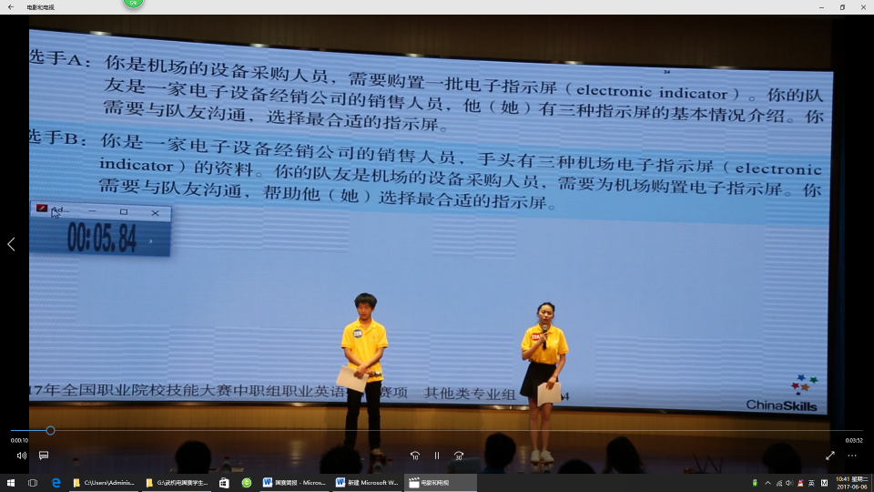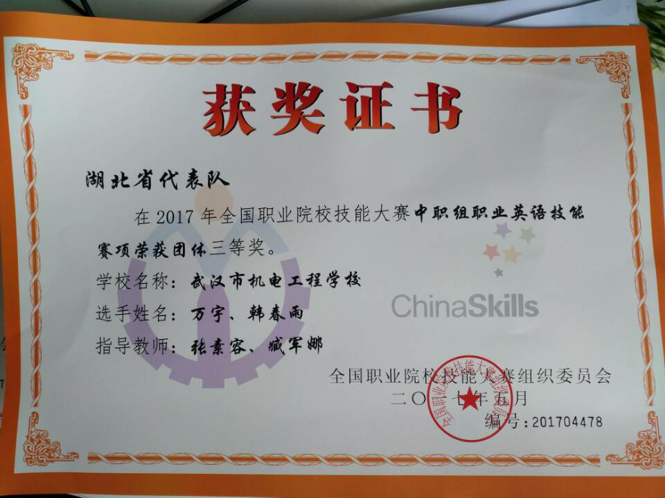 2017年5月27日--31,武汉机电工程学校代表湖北省参加了在江苏省常州市举行的全国职业院校技能大赛英语职业技能赛项(中职其它组)的比赛。