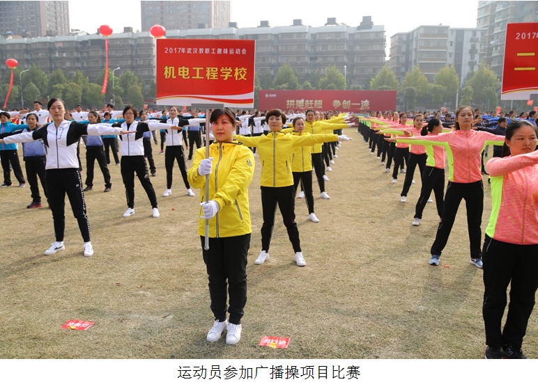 11月4日,我校43名教职工组成运动员代表队参加了2017年武汉市教职工趣味运动会。本次教职工趣味运动会由市教育工会主办,来自各区、局直属单位、市属中专联队等2300余名教职工43支代表队齐聚武汉四中参加全市教育系统教职工盛会。机电学校教职工代表队喜获“体育道德风尚奖杯”。