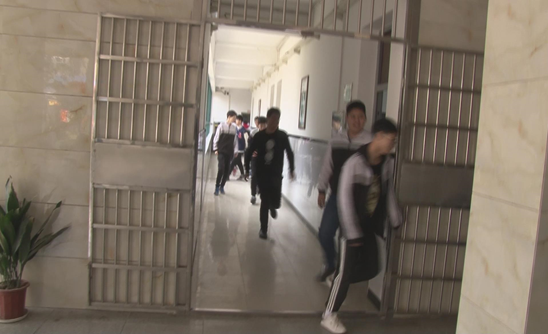 教师带领学生迅速有序地从教学楼疏散到操场进行逃生