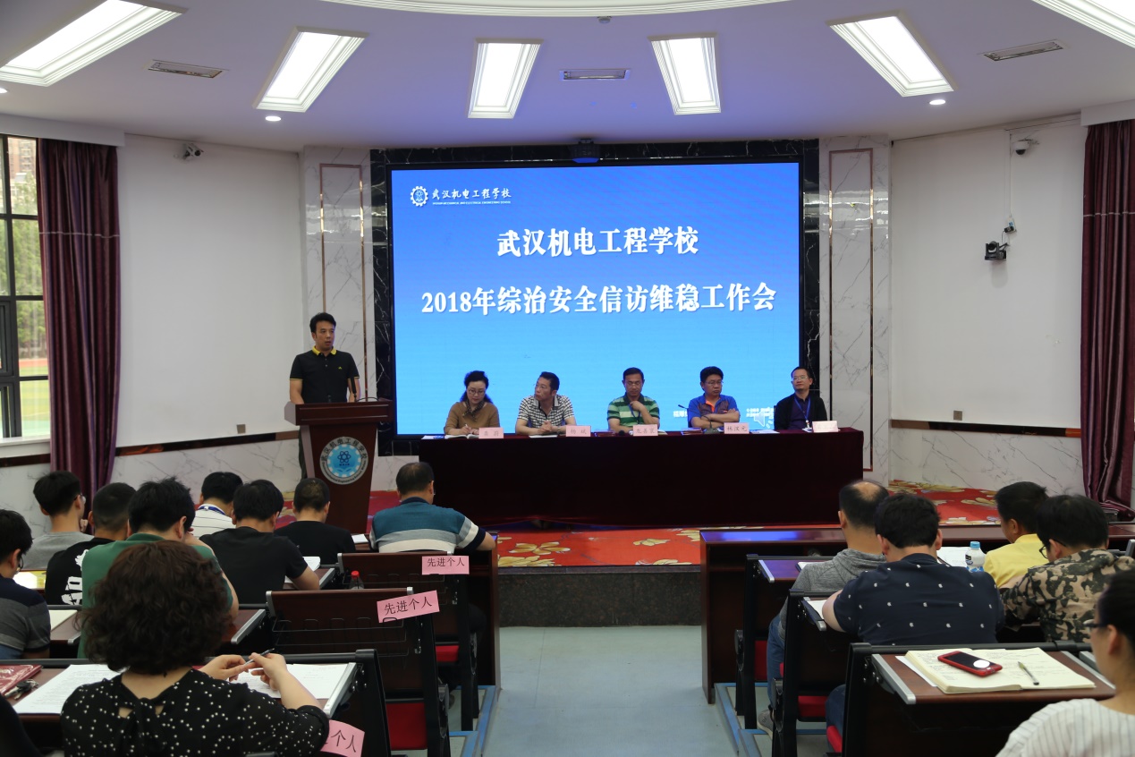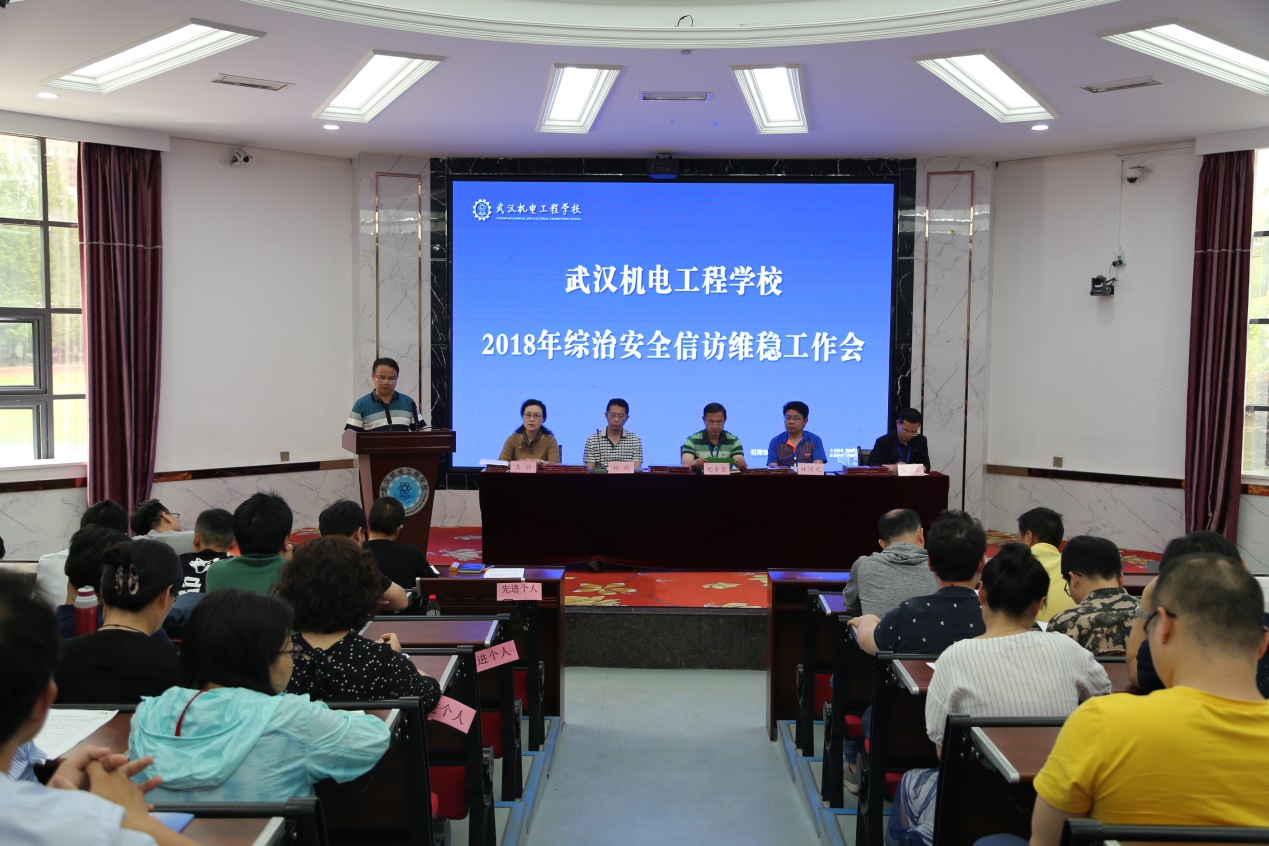 2018年5月4日下午,武汉机电工程学校举行2018年综治安全信访维稳工作会。全体教职工参加会议,校长龙善寰主持会议。