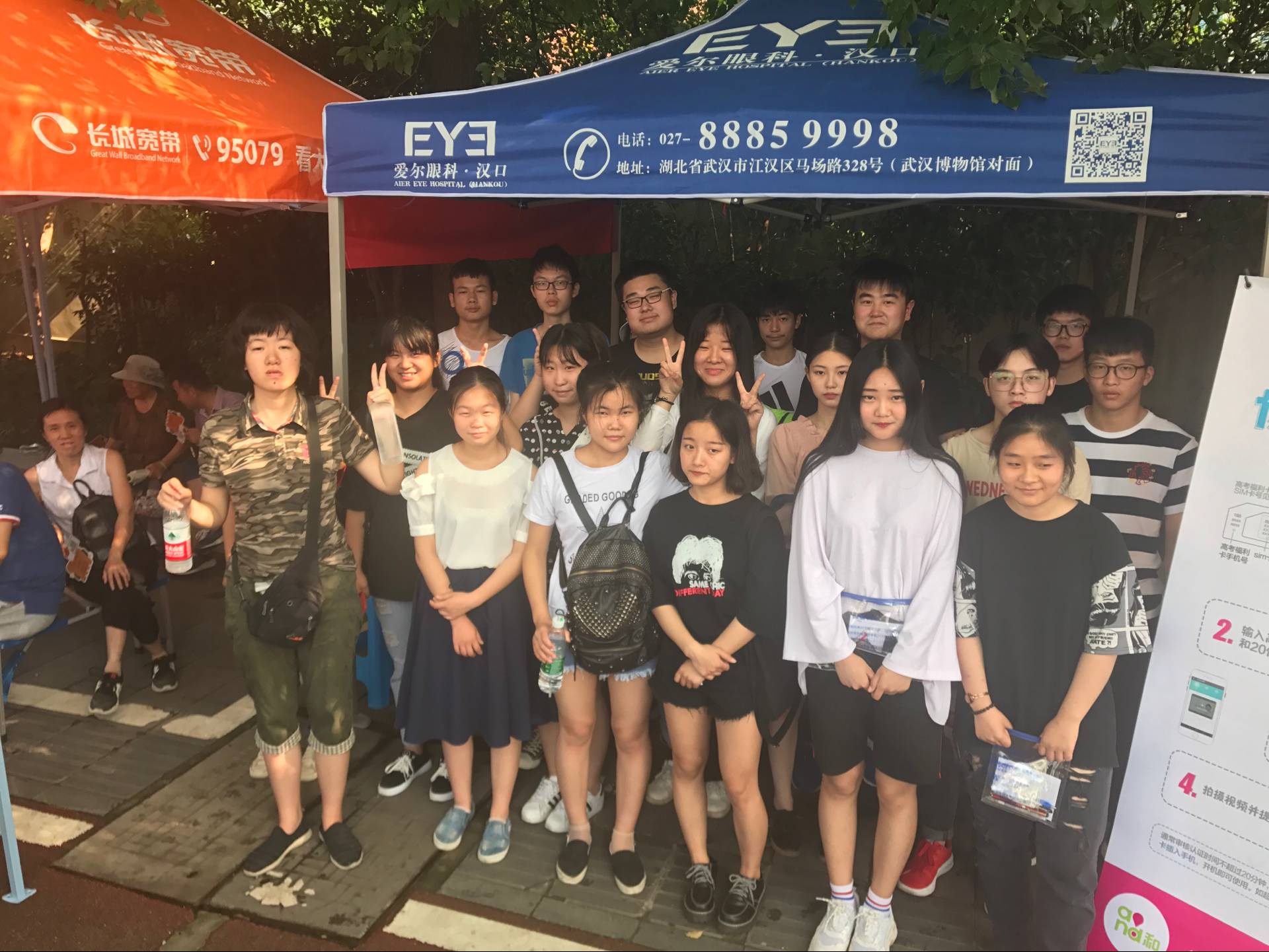 任崇阳老师(左1)、周主任(左2)、李乐老师(左4)在考点外同考生合影