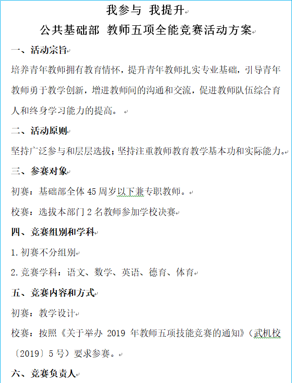 为了选拔教师参加学校教师教学 “五项全能”竞赛,经研究决定,我部于3月23日至4月2日,举行了初赛,选拔出何耀焕(数学教研室)、李凌慧(语文教研室)两位老师参加学校的“五项全能”决赛。
